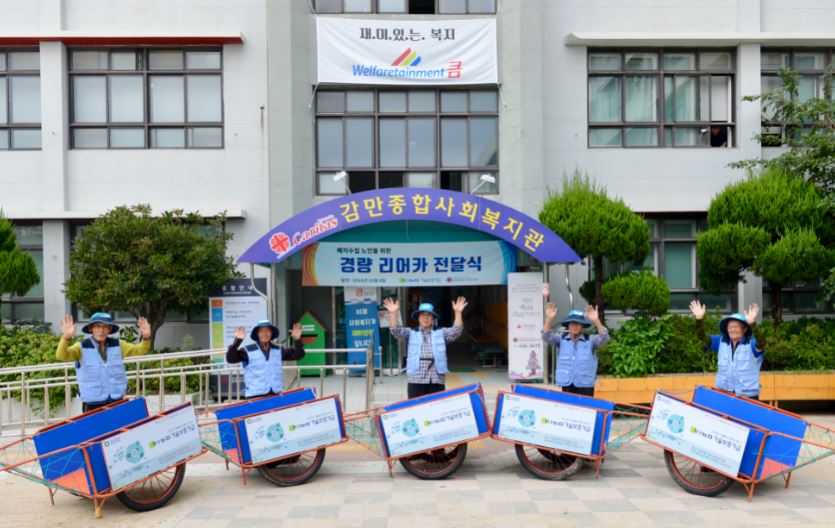 특히 기부하는 리어카는 기존 리어카 대비 무게가 20~30kg 가벼운 경량 리어카(40kg)로, 취약계층 노인들이 보다 편리하고 안전하게 폐지와 고물을 수집할 수 있도록 설계 됐다.
