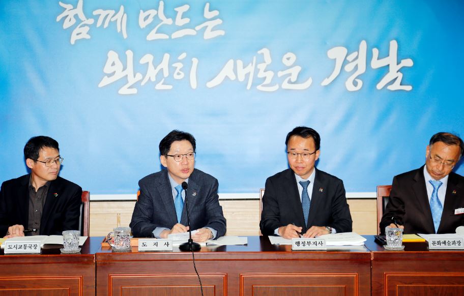 이후 박성호 행정부지사 주재로 진행된 회의에서는 ‘도민중심의 함께 만드는 혁신경남 실현’과 ‘남북교류제안사업’ 등에 대해 집중 토론하고, 도와 시·군의 주요 현안사항을 논의했다.
