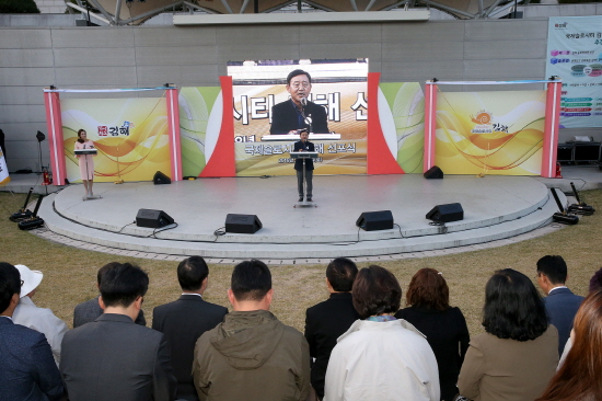 허성곤 김해시장이 지난 3일 열린 국제슬로시티 김해 선포식에서 발언을 갖고 있다.