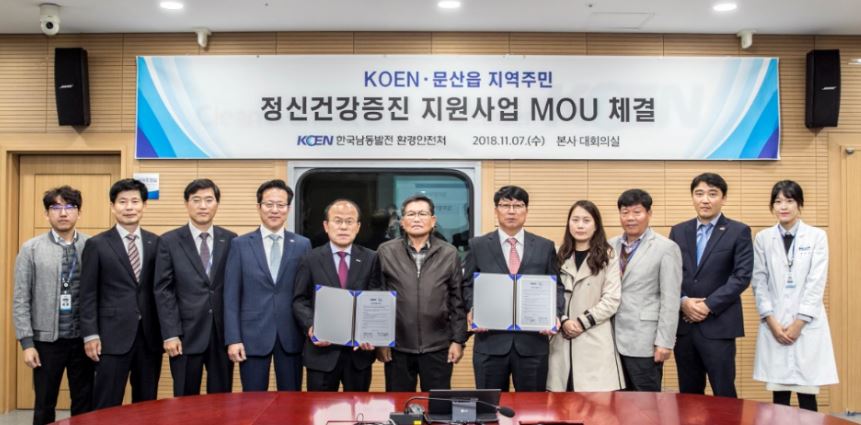 이날 협약식에는 김학현 한국남동발전 기술본부장과 김용규 진주시 문산읍장, 전현수 이장단협의회장 등이 참석했으며, 이번 협약을 통해 한국남동발전은 문산읍 주민들을 대상으로 정신건강증진 프로그램 운영 및 생필품 지원과 간담회를 시행하고, 문산읍은 주민 모집과 프로그램 운영장소 제공 등을 지원하기로 했다.