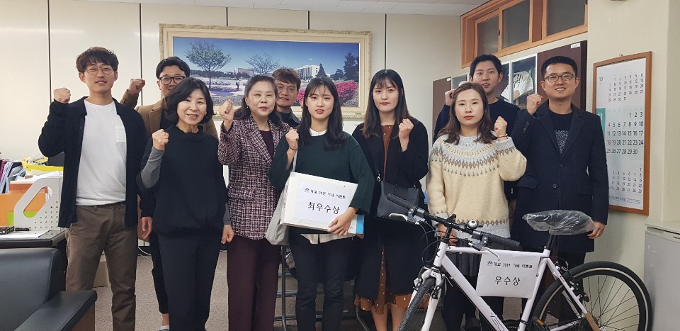 이 가운데 최우수상 1명(제시언 법학과 학생)에게는 노트북 1대, 우수상 2명(박재민 수의학과 학생, 김경은 농업식물과학과 학생)에게는 자전거 1대씩, 장려상 4명(정민주 식품영양학과 조교, 조영현 식품공학과 학생, 김가은 경영학과 학생, 김은진 지역민)에게 5만원 상당 상품권 각 1장씩 수여했다.