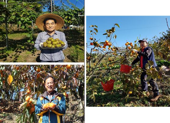 진주신현열(참다래, 왼쪽 위), 창녕노왕현(단감, 왼쪽 아래), 산청하일규(떫은감, 오르쪽)