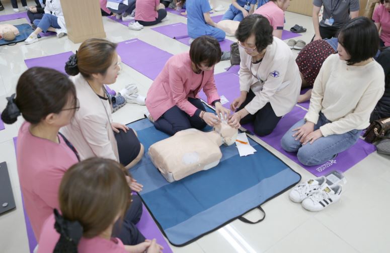 구포성심병원이 심폐소생술 교육을 하고 있다.