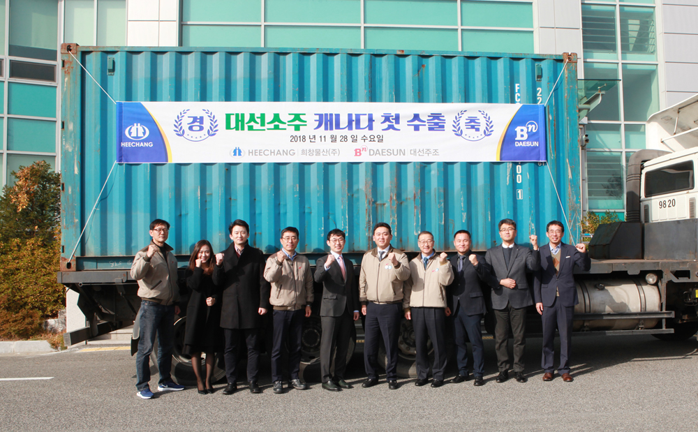 대선주조(대표 조우현)는 지난 28일 오전 11시 대선주조 기장공장에서 ‘대선소주 캐나다 수출 기념식’을 열었다.