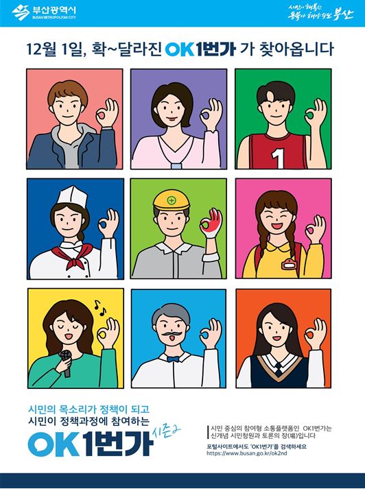 한편, 부산시는 내년 초 ‘OK1번가 시즌2’ 내 ‘시민토론 ON AIR’ 기능을 추가해 부산시의 주요정책이나 시민우수제안에 대한 토론 및 찬·반 투표장을 제공하고, 소통버스·시민소통콜 등 현장청원 창구를 운영해 시민과의 소통을 확대해 나갈 계획이다.