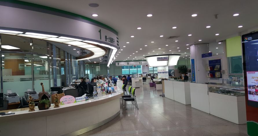 안내표지판은 파란색으로 통일해 깔끔한 느낌을 주며 순번대기표, 바닥 스티커, 창구 미드라인은 업무별로 색깔을 달리해 민원인을 배려했다.