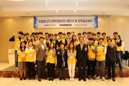 지난 11월 30일 진주 MBC컨벤션센터에서 KOEN대학생 봉사단 장학금 수여식에서 기념촬영을 하고 있다.