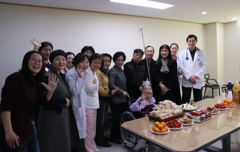 [부산=일요신문] 박영천 기자 = 온종합병원에서 웃음꽃이 피어났다. 호스피스병동에서 지난 11월 30일 올해 만100세를 맞은 이춘남 할머니의 생신 축하자리가 마련된 것이다.