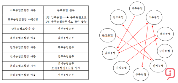 남부농협조합장은 “딸이 서부농협에 근무한지 4여년정도 된다”고 전했다. 북부농협조합장은 두차례 본지의 전화 취재에 응하지 않았다.