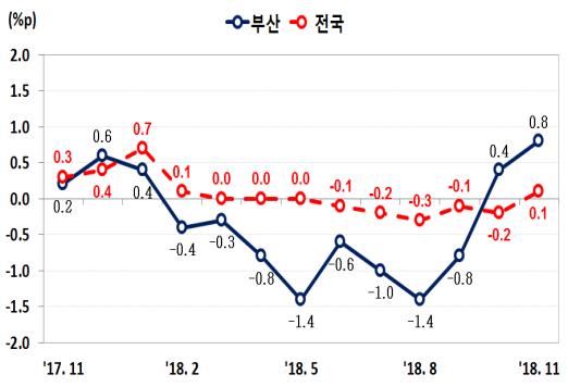 고용의 질적측면을 살펴보면 고용의 질이 양호한 상용임금 노동자의 증가 폭이 전국보다 크게 높은 수준(부산 7.1%, 전국 2.5%)이고, 전체 취업자수 대비 상용임금근로자 비중이 부산 54.9%, 전국 51.1%로 3.8%p 높은 수준이다.