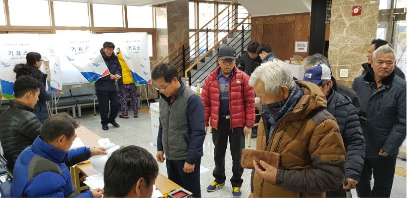 남거창농협과 신원농협 합병안 조합원 찬반투표 실시 모습