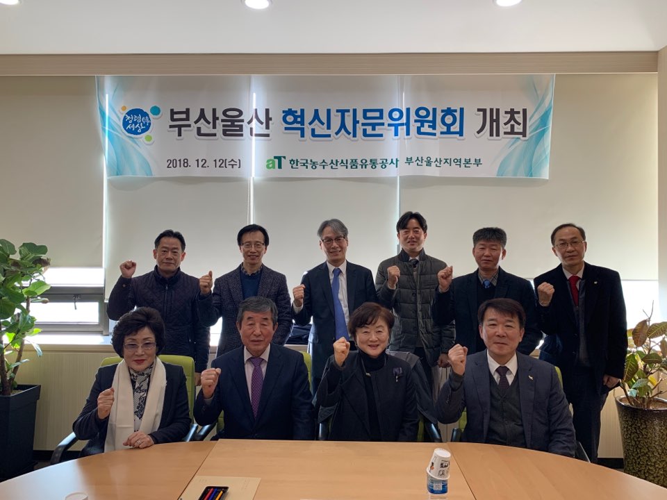 [부산=일요신문] 박영천 기자 = 한국농수산식품유통공사(aT) 부산울산지역본부(본부장 강경중)는 지난 12일 지역본부 회의실에서 공무원, 학계, 농수산식품업체, 기관 및 소비자단체 등으로 구성된 ‘2018년 제2차 혁신 자문위원회’를 개최했다.<사진>