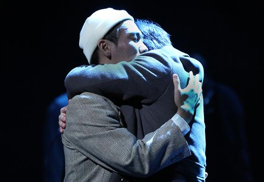 뮤지컬의 한 장면. 서로 껴안는 다니엘과 라일리.(사진=예술은 공유다)