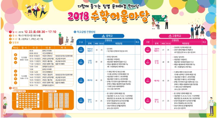 이 행사는 수학을 좋아하는 학생들이 모여 순위 경쟁 없이 팀원끼리 협력하면서 즐겁게 수학 문제를 풀면서 수학문제해결능력과 의사소통능력, 협업정신 등을 키울 수 있도록 진행한다. 이 같은 방식의 수학 관련 행사는 전국 시·도교육청 가운데 부산교육청이 처음이다.