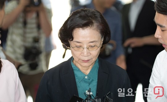지난 6월 영장실질심사를 받기 위해 서울중앙지법에 들어선 ‘조양호 한진그룹 회장의 부인’ 이명희 전 일우재단 이사장. 사진=임준선 기자