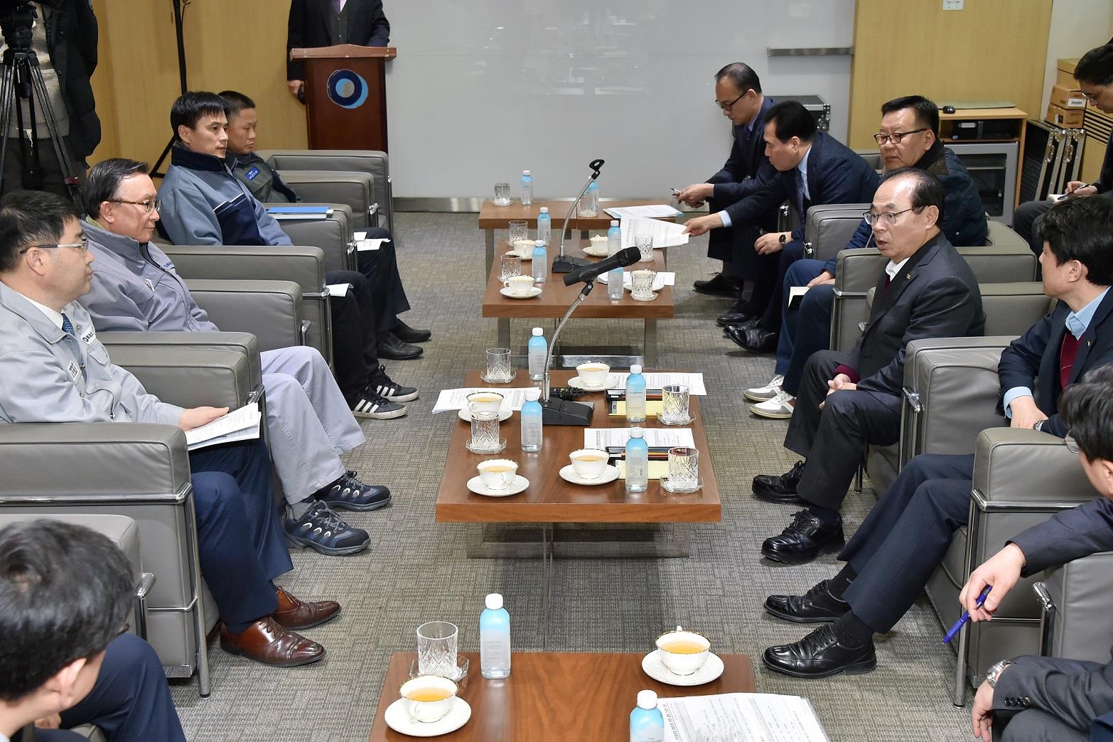 오거돈 시장이 한진중공업과 긴급 간담회를 가지고 있다.
