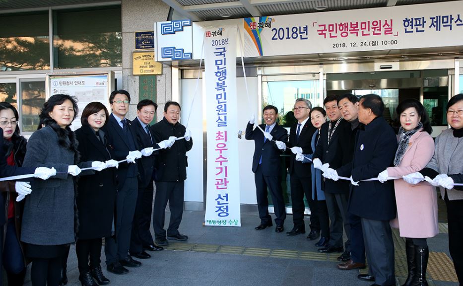 지난해 김해시청 민원실은 행정안전부의 ‘2018 국민행복민원실’에 선정돼 대통령 표창을 수상했다.