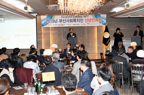 [부산=일요신문] 박영천 기자 = 김석준 부산광역시교육감은 16일 오전 11시30분 부산 연제구 연산동 W파티에서 부산사회복지법인·시설·기관 대표 등 130여명이 참석한 가운데 열린 ‘2019년 부산사회복지인 신년인사회’에서 인사말을 가졌다.<사진>