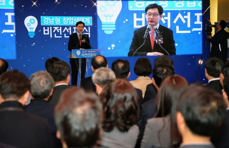 비전 선포식은 김경수 도지사의 식사(式辭)를 시작으로 김학도 중소벤처기업부 차관, 김지수 도의장과 한철수 경남상공회의소협의회장 축사, 경남 창업생태계 활성화 계획 발표, 중국 심천 창업 사례 발표에 이어 엔젤투자 성공 및 실패 사례 발표순으로 진행됐다.