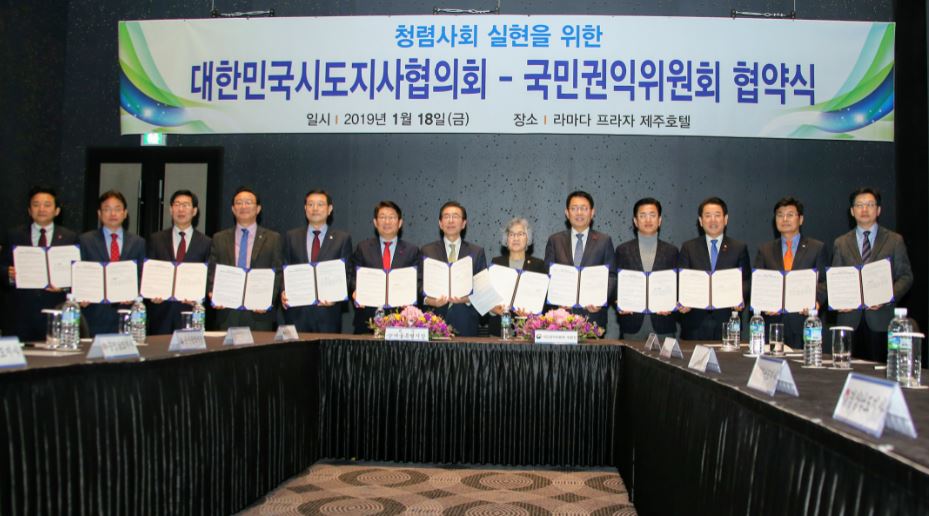 한편, 총회에 앞서 박은정 국민권익위원장과 시도지사가 함께 민선7기 새롭게 출범한 지방정부가 중앙정부와 함께 청렴 사회 실현을 위해 노력하자는 취지로 청렴 협약을 체결했다.