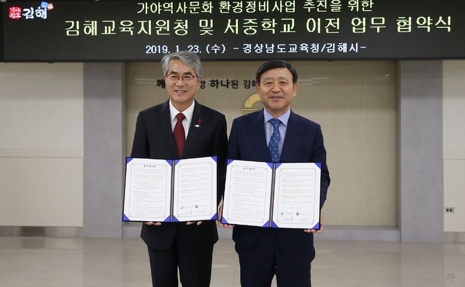 양 기관은 이번 협약을 통해 가야역사문화 환경정비사업 구역 내 노후, 협소한 김해교육지원청은 2021년까지 경남개발공사 소유 학교용지인 구산동 1075번지로, 김해서중은 2022년까지 중학교 신설이 필요한 주촌면 선지리 산68번지로 이전하는데 협력하기로 했다.