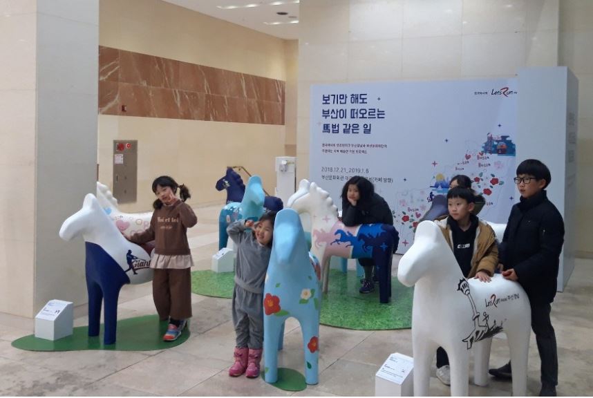 부산 대표상징이라는 옷을 입은 10마리의 아트호스들은 작년 12월 부터 올 1월초까지 전시되어 연말 가족, 연인과 함께 부산문화회관을 찾은 시민들에게 색다른 즐거움과 추억을 선사했다.
