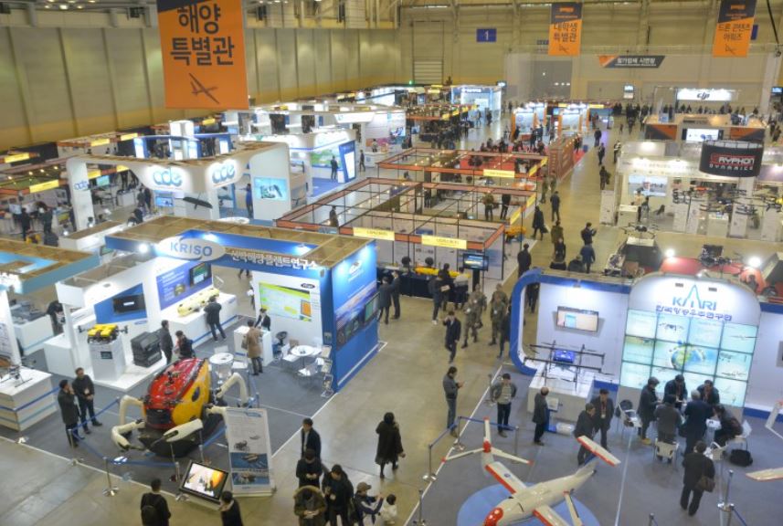 전시회에는 대한항공, 유콘시스템, 파인ADS, PNU 드론, 네스엔텍, 샘코 등 국내 무인기(드론) 관련 업체와 함께 연료전지 기술을 드론 배터리에 적용해 비행시간을 비약적으로 늘린 두산모빌리티이노베이션(DMI), 통신과 연결된 드론의 확장성을 제시할 SKT가 새롭게 참여해 산업간 융복합 사례를 선보인다.