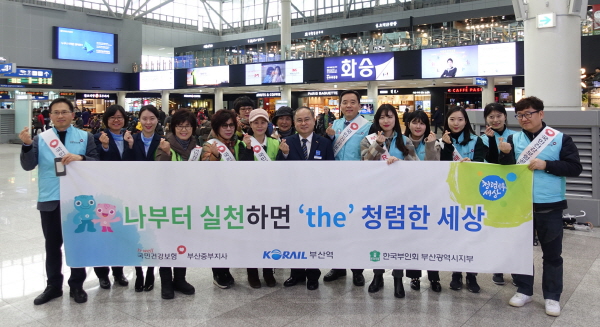 [부산=일요신문] 박영천 기자 = 국민건강보험공단 부산중부지사(지사장 손영덕)는 지난 1월 31일 KTX 부산역에서 한국부인회 부산광역시지부 및 코레일 부산역과 합동으로 설 명절 맞이 반부패·청렴 실천 캠페인을 전개했다.<사진>