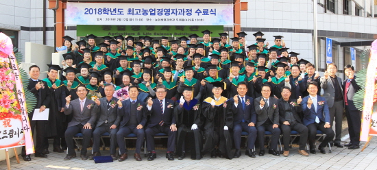 이날 수료자는 낙농 전공 14명, 농산물가공 전공 19명, 농촌관광 전공 17명, 발효식품 전공 17명, 베리 전공 9명, 시설원예 전공 12명, 한우 전공 17명 등 모두 105명으로 1년 과정을 성실하게 이수한 농업경영인들이다.