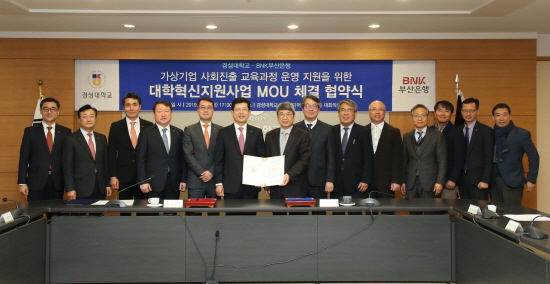 또한 경성대 대학혁신지원사업 혁신과제인 ‘가상기업 사회진출 교육과정’에 대해 부산은행이 교육과정 개발 및 운영, 실무교육, 인적교류 등을 지원하는 ‘대학혁신지원사업 업무 협약(MOU)’도 체결했다.