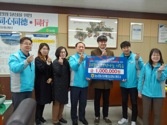 [경남=일요신문] 정동욱 기자 =농협김해유통센터(사장 김육수)는 지난 27일 임직원들이 십시일반으로 모은 기부금을 김해아동복지센터에 전달했다.<사진>