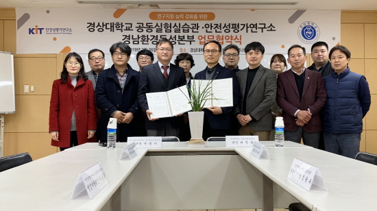 이날 협약 체결식에는 최명룡 경상대학교 공동실험실습관 관장, 서종수 안전성평가연구소 경남환경독성본부 본부장 등 모두 10여 명이 참석했다.