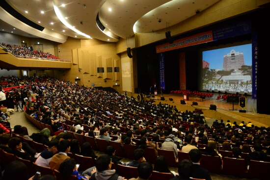 이날 입학식에는 송수건 총장을 비롯한 보직교수, 대학관계자, 신입생 및 학부모 등 약 3,000여명이 참석한 가운데 1부 입학식과 2부 환영행사로 나눠서 진행됐다.