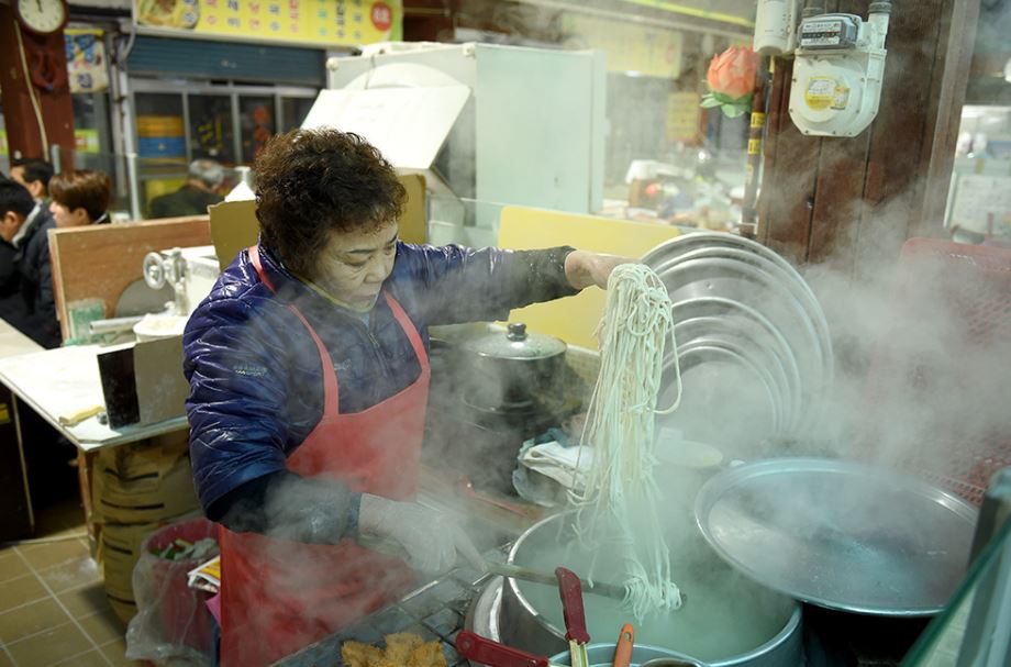 #동상동 재래시장의 최고 먹거리는 김해 대표 슬로푸드로 유명한 칼국수.