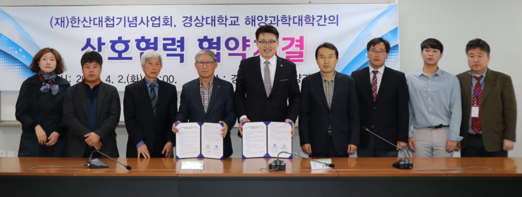 이날 상호협력 협약 체결식에는 경상대학교 해양과학대학 김무찬 학장, 한산대첩기념사업회 정동배 이사장 등이 참석했다.