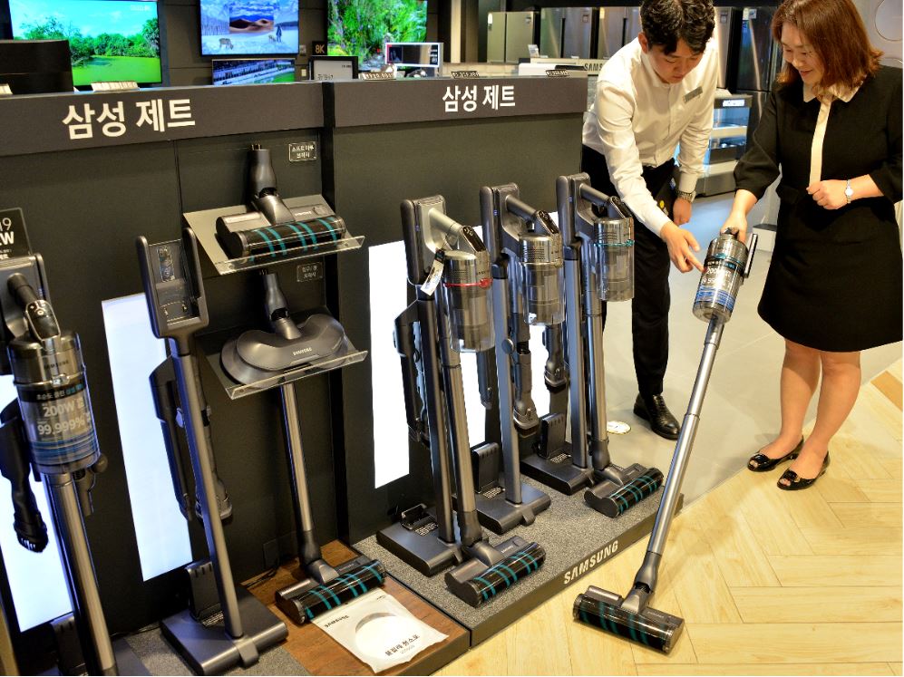 삼성전자에서도 ‘파워건’에 이어 지난 2월 무선청소기 신제품 ‘삼성 제트’를 출시하며 시장 공략에 나섰다. 업계 최고 수준인 최대 200와트(W)의 흡입력과 최대 60분 사용, 미세먼지 등 유해물질은 99.999% 배출 차단, 물걸레 청소가 가능한 브러시도 탑재해 큰 관심을 끌면서 출시 이후, 청소기 매출이 지난해보다 300% 이상 증가했다. (롯데백화점 부산본점 기준)