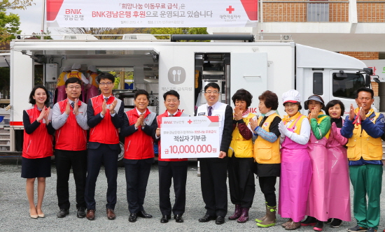 BNK경남은행은 같은 날 희망나눔 밥차 무료급식 행사 추진을 위한 재원으로 대한적십자사 경남지사에 1000만원의 기부금을 기탁했다.