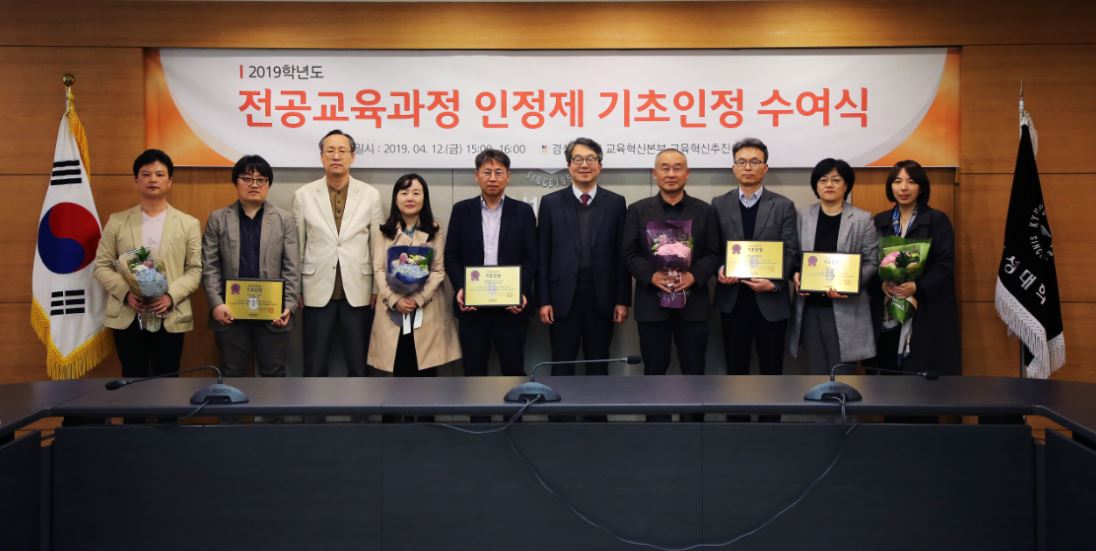 [부산=일요신문] 박영천 기자 = 경성대학교(총장 송수건)는 ‘2019학년도 전공교육과정 인정제 기초인정 학과에 대한 인정패 수여식’을 지난 12일 오후 멀티미디어정보관 703호에서 열었다.