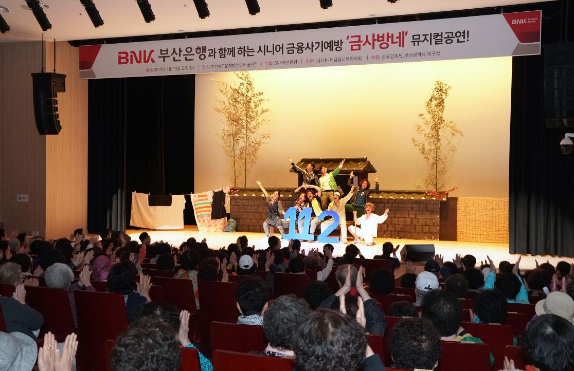 BNK부산은행은 19일 오후, 지역 시니어 금융소비자 350여명을 부산북구문화빙상센터로 초대해 금융사기 예방 뮤지컬 ‘금사방네’를 공연했다.