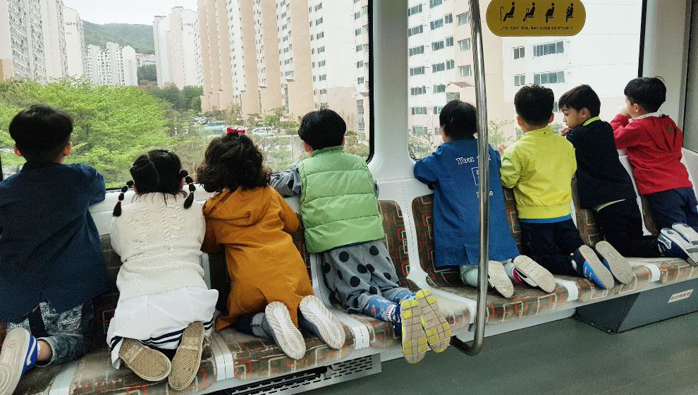 봄꽃이 활 짝 핀 차량기지에서 신나게 뛰어놀고, 경전철을 직접 탑승하는 등 어린이에게 색다른 경험을 선사하였다.