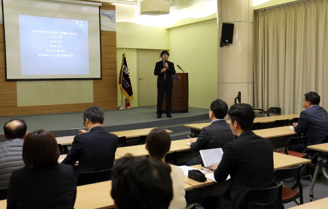‘미디어와 언론보도의 이해’라는 주제로 열린 강의에서는 현대사회에서의 매스미디어(매체)의 영향력과 중요성, 공공기관 직원이 미디어와 언론을 이해해야 하는 이유, 홍보자료 작성방법 등에 대해 설명했다.