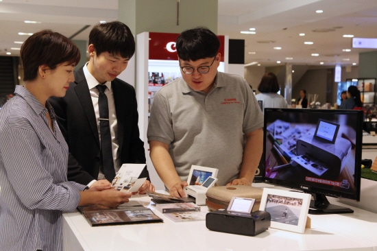 [부산=일요신문] 조정기 기자 = 봄나들이 시즌, 가정의 달 등 사진을 많이 찍을 시기가 된 가운데, 신세계 센텀시티 7층 ‘캐논’ 매장<사진>이 집에서 간편하게 사진을 인화할 수 있는 ‘포토 프린터’를 선보여 인기다.