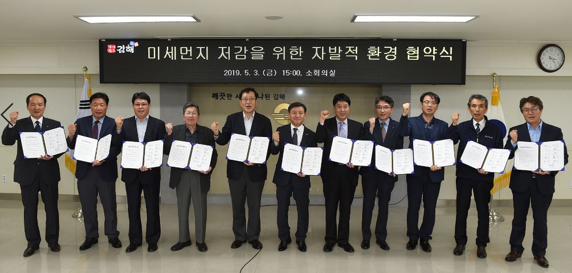 김해시에 미세먼지 저감 운동에 10개 기업이 동참하고 환경협약을 체결했다.