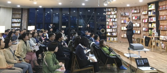 지난 2일 오후 경상대학교 복합문화공간 ‘북카페 지앤유’에서 열린 ‘음악과 이야기가 있는 북콘서트’ 모습.