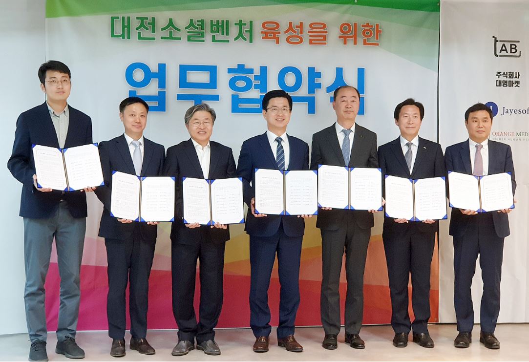 [부산=일요신문] 박영천 기자 = 기술보증기금(이사장 정윤모, 이하 기보)은 대전시, 대전창조경제혁신센터, K-water, 사회적가치연구원, 민간 투자사 등 6개 기관과 함께 지난 7일 대전도시공사 본사에서 ’대전소셜벤처 육성을 위한 업무협약‘을 체결하고, 대전지역 소셜벤처기업 육성 및 지원에 적극 협력키로 했다.