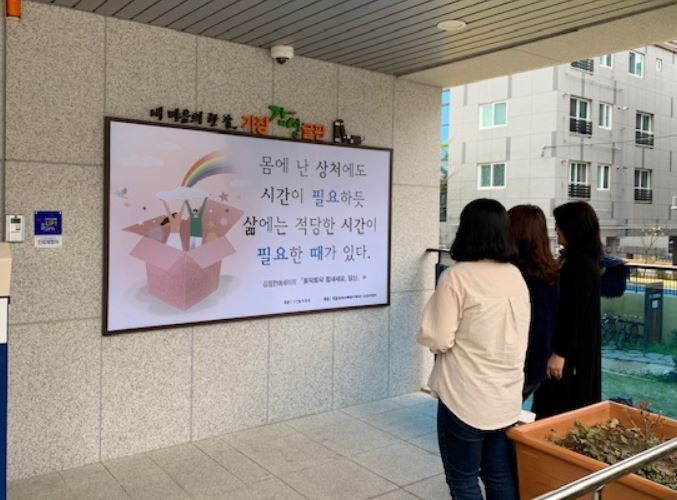 ‘인문학글판’은 일상 속에서 느끼는 따뜻한 감성, 꿈과 희망의 내용 등을 이미지와 함께 글판으로 제작하여 설치하는 것으로 기장군 5개 읍․면에 위치한 버스 정류장 105개소, 공원 15개소 등 군 곳곳에서 기장군민들에게 따스한 감성을 선물한다.