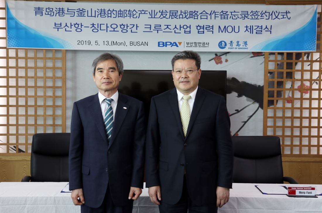 부산항만공사는 13일 중국 칭다오항그룹과 크루즈 항로 개발과 발전을 위한 협력 MOU(양해각서)를 체결했다