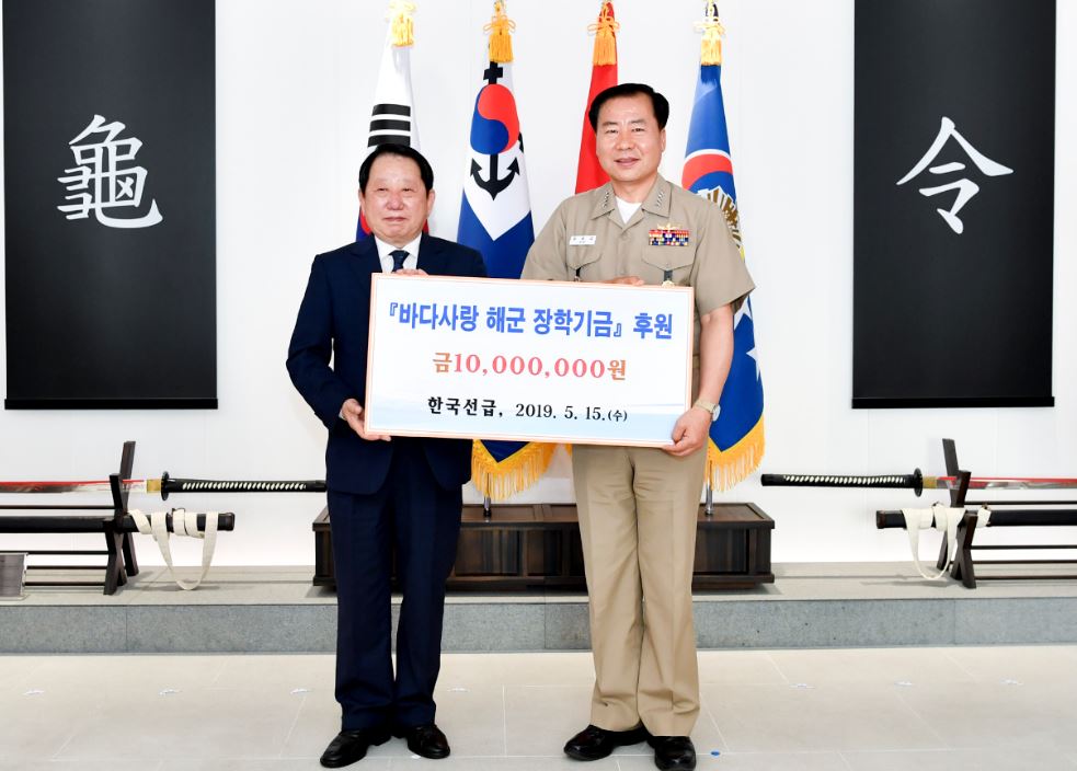 [부산=일요신문] 박영천 기자 = 한국선급(KR, 회장 이정기)이 지난 15일 해군본부(충남 계룡대)를 찾아 ‘바다사랑 해군 장학재단’에 장학금 1천만원을 전달했다.