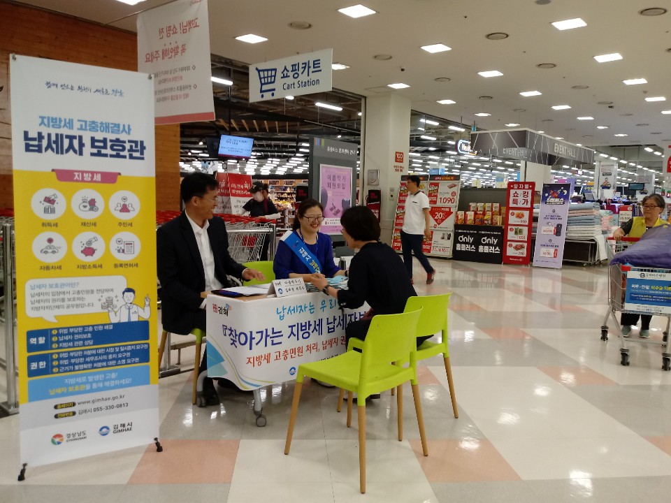 김해시는 지난 17일 오후 시 홈플러스 김해점에서 납세자보호관 및 마을세무사 등 관계자 합동으로 지방세와 국세 등에 대한 세무 상담을 펼쳤다.<사진>