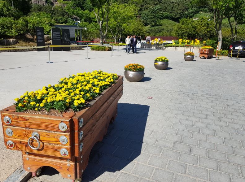 [경남=일요신문] 박영천 기자 = 김해시 진영읍행정복지센터는 봉하마을 가로변 대형화분에 메리골드 3,600본을 심어 관광객을 맞고 있다고 22일 밝혔다.